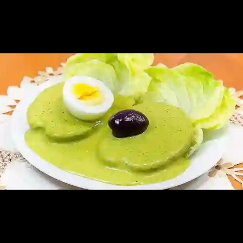 Papa en salsa huancaína con lechuga.