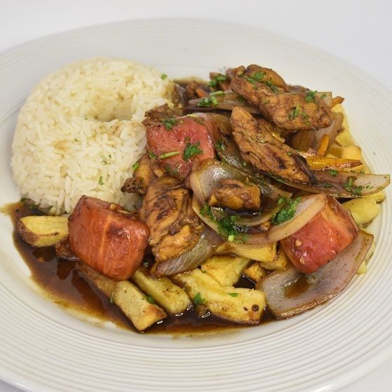 Pollo saltado con opción a adicionar bebidas y entrada.