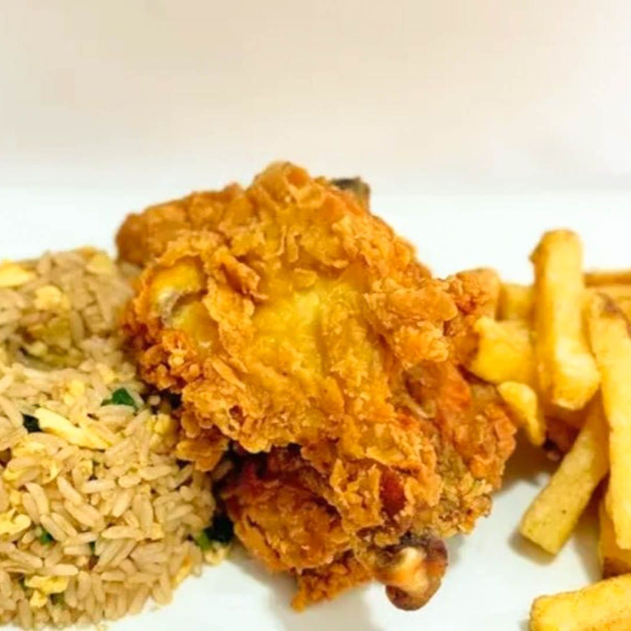 Mostrito (chaufa con papas fritas y pieza de pollo broaster a elección).