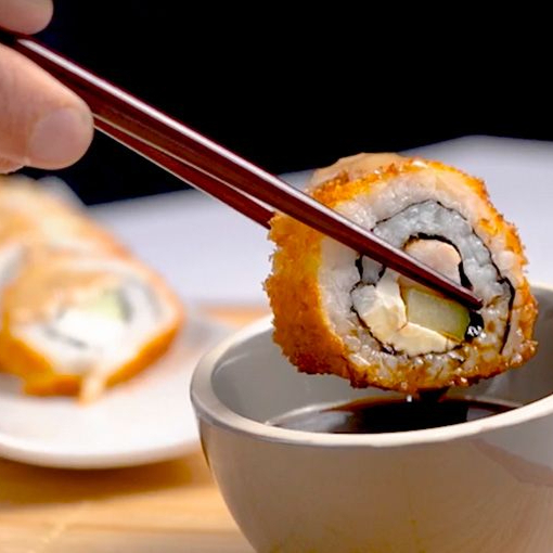Roll envuelto en queso empanizado, sabor california crocante frito.