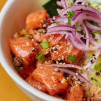 Pepino japonés, palta, chicharrón de pota, salmón y chalaquita.