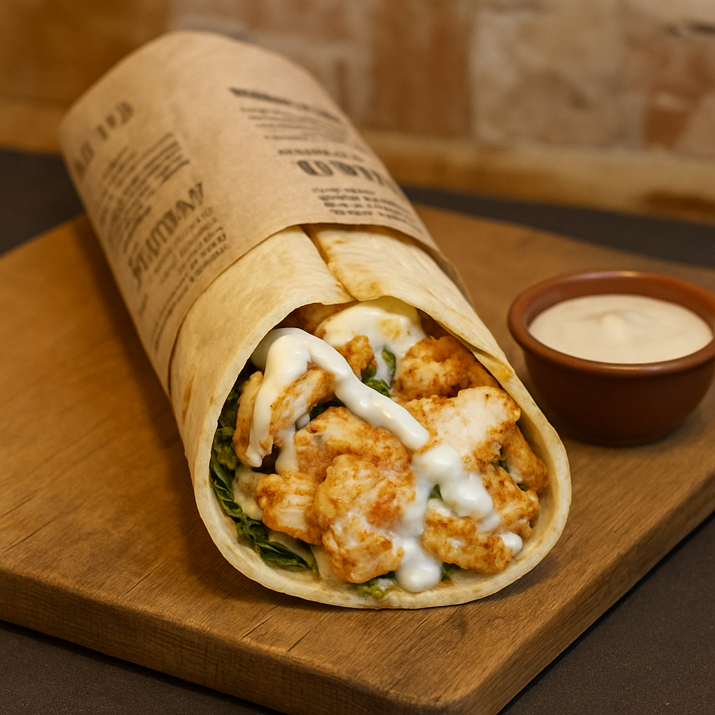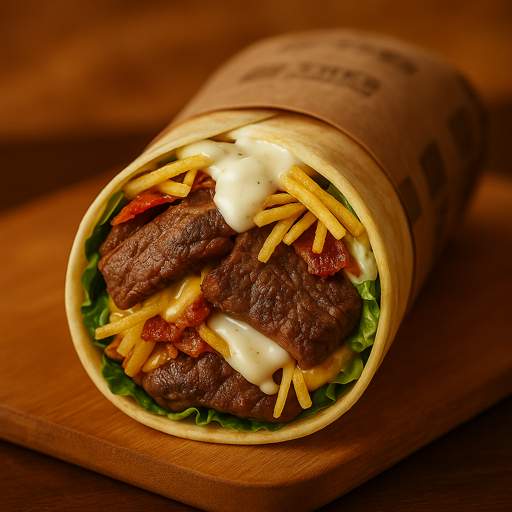 Jugosas tiras de pollo y carne de res, acompañadas de chorizo parrillero, papas al hilo, lechuga fresca y un toque cremoso de nuestra exclusiva crema de ajo, todo perfectamente envuelto en un suave wrap artesanal.