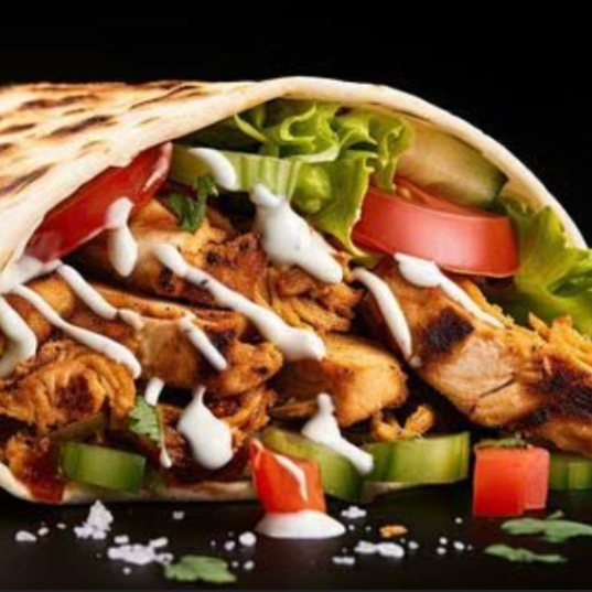 Pollo jugoso y carne de res sazonada, bañados en deliciosa salsa BBQ, acompañados de papas al hilo y lechuga fresca, todo envuelto en pan árabe con cremas a elección.