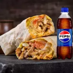 2 Shawarmas Especiales + 1 Pepsi 355 ml: dos porciones tamaño estándar de pollo con papas, ensaladas y cremas a elegir (ajo, vinagreta BBQ, ají).