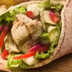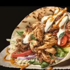 Pan árabe, pollo, cordero, papas, ensalada fresca, cremas (las elige el cliente).