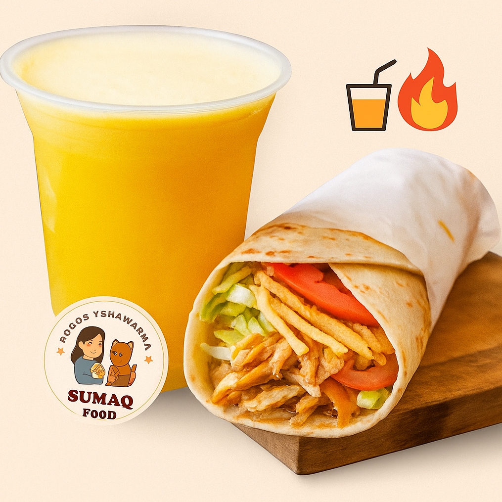 Shawarma clásico con pollo, vegetales y papas al hilo, acompañado de un jugo natural a elección. ¡La promo ideal para disfrutar y ahorrar! 🔥