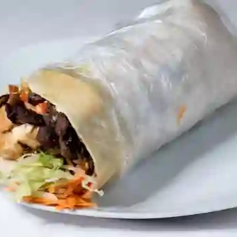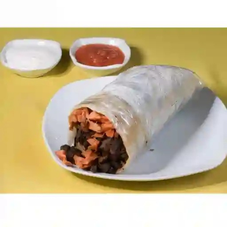 Shawarma de cecina con papas al hilo, ensalada de lechuga y zanahoria cremas a elección.