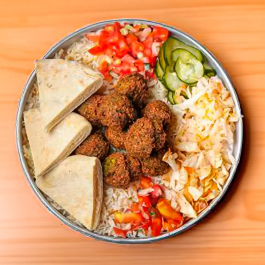 crocante falafel a base de garbanzo, pan pita y hummus.