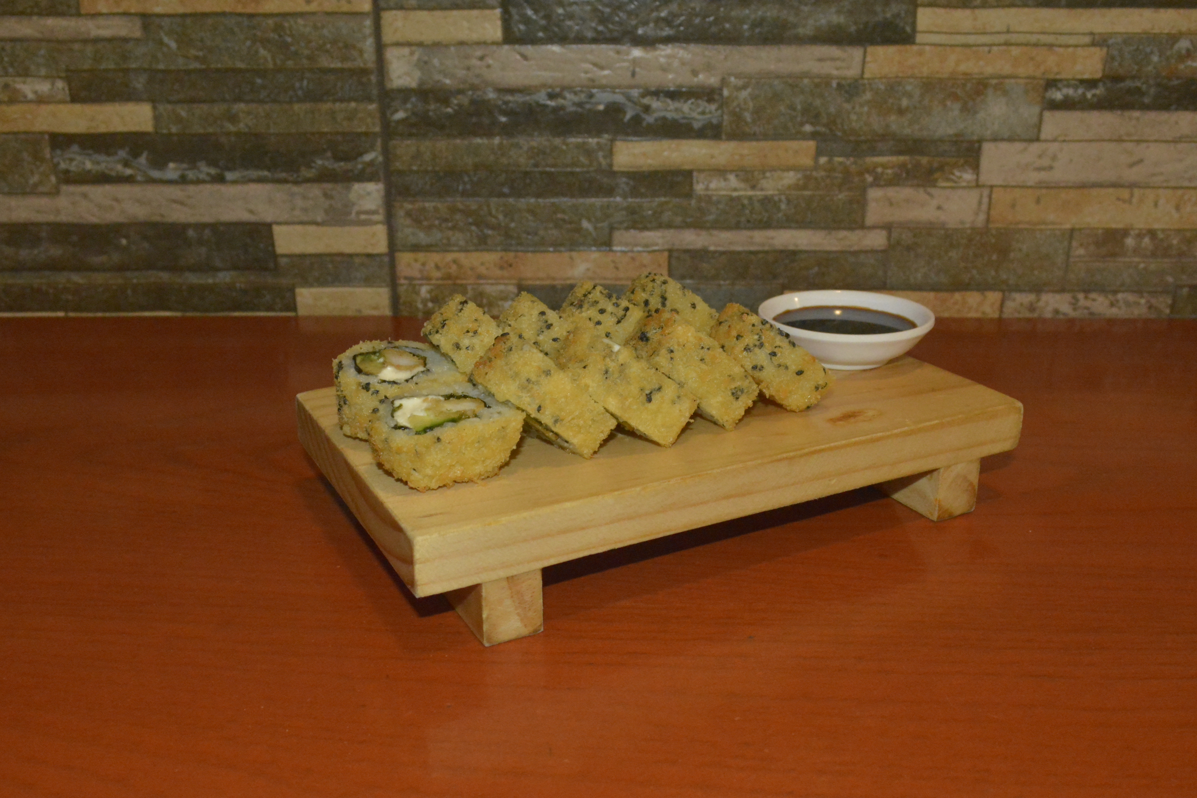 Pescado al panko, cebolla china y palta, cubierto queso atruchado, bañado con salsa teriyaki.