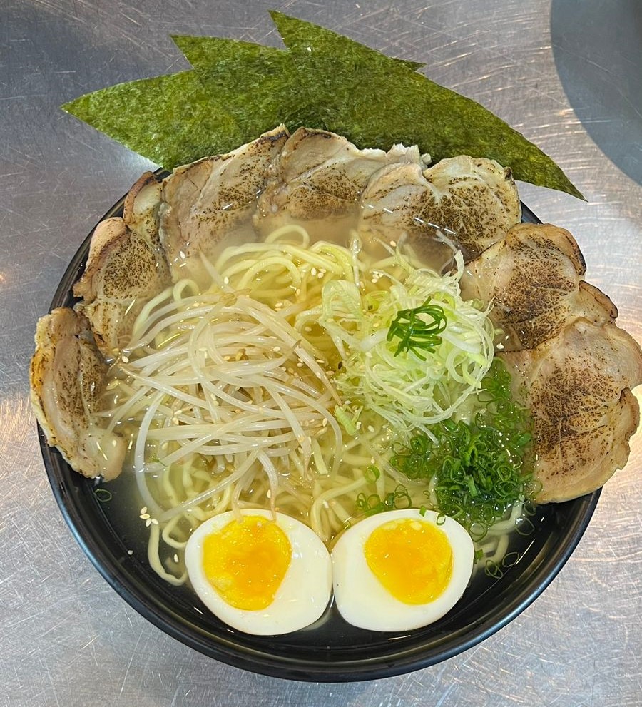 Base de pollo y salsa de soya, acompañado de láminas de cerdo, verduras, huevo y fideos artesanales.