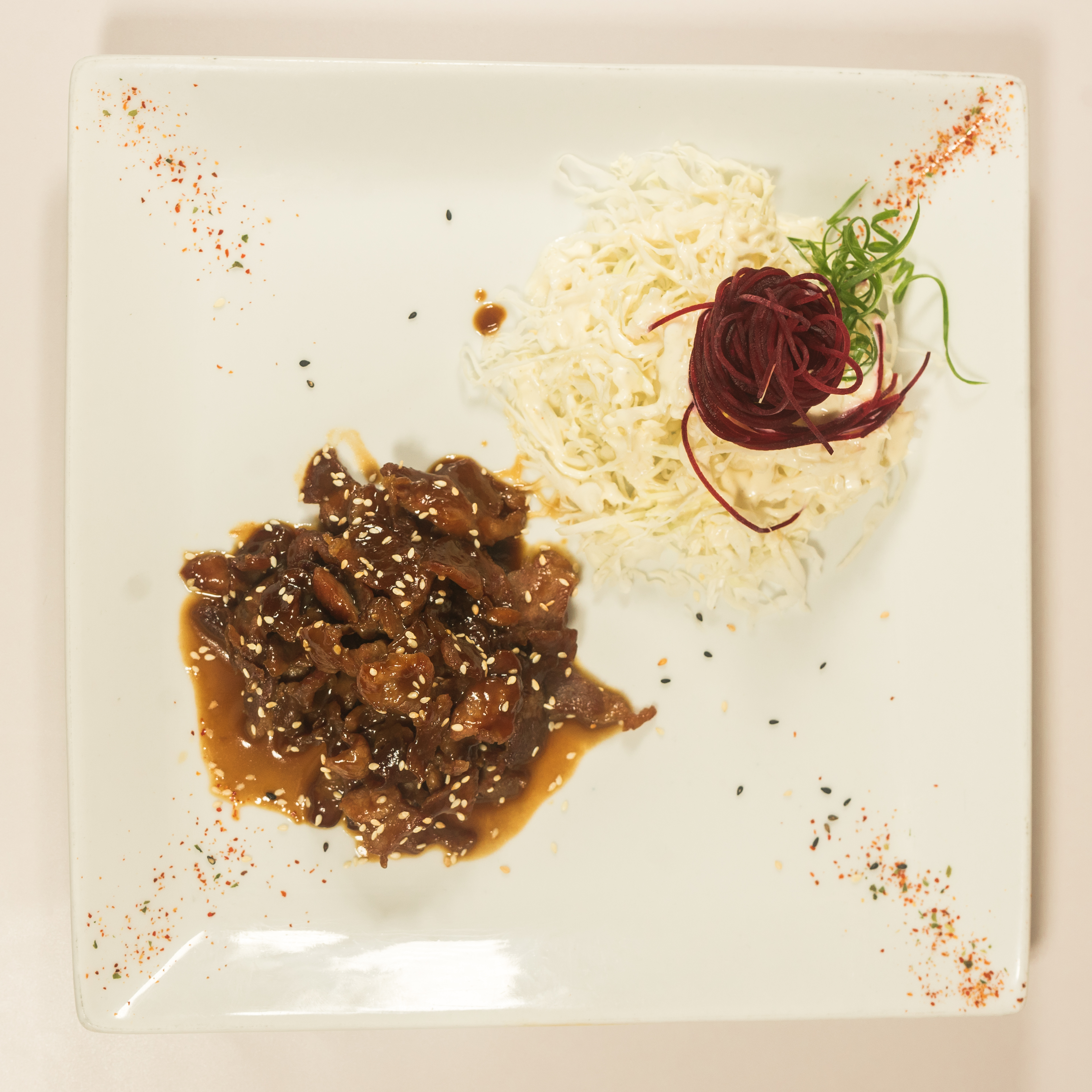 Láminas de cerdo guisadas en salsa de kion (incluye arroz blanco).