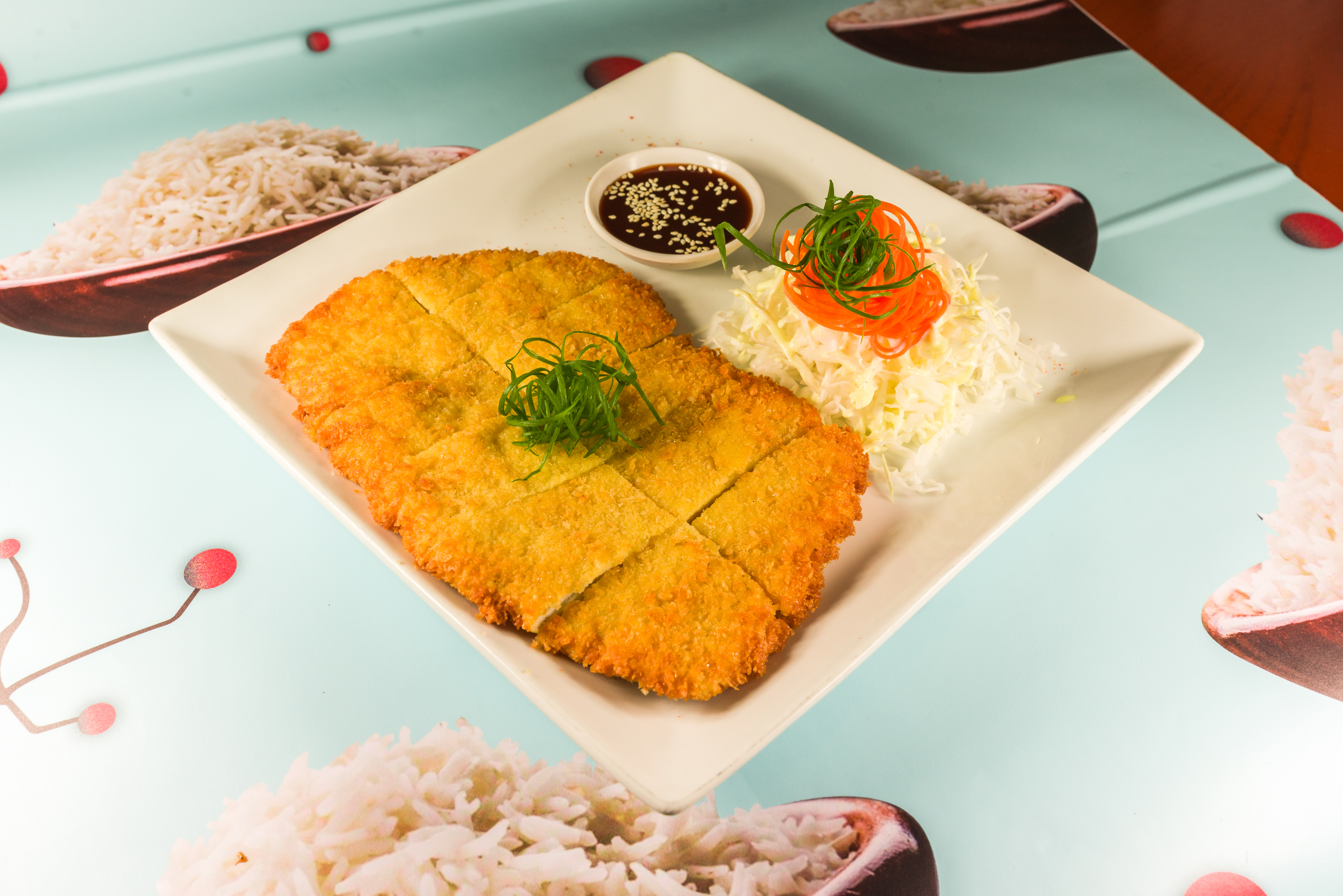 Crocante filete de pollo al panko (incluye arroz blanco).