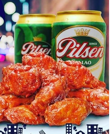 24 Wings más dos latas de cerveza Pilsen 330 ml.