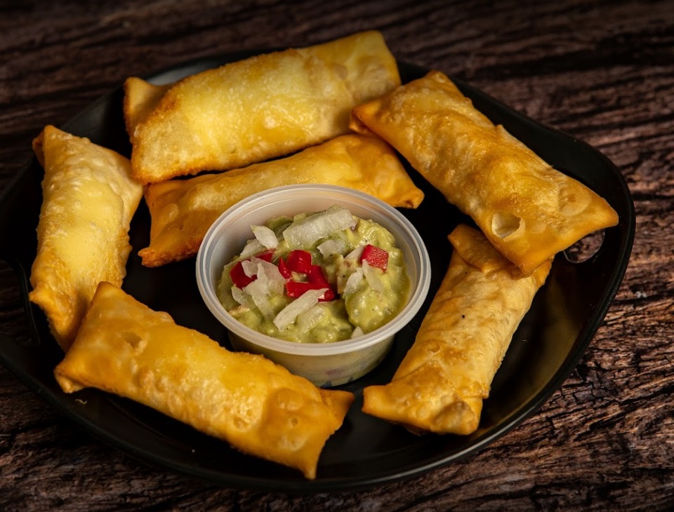 8 Tequeños rellenos de doble queso acompañados de guacamole.