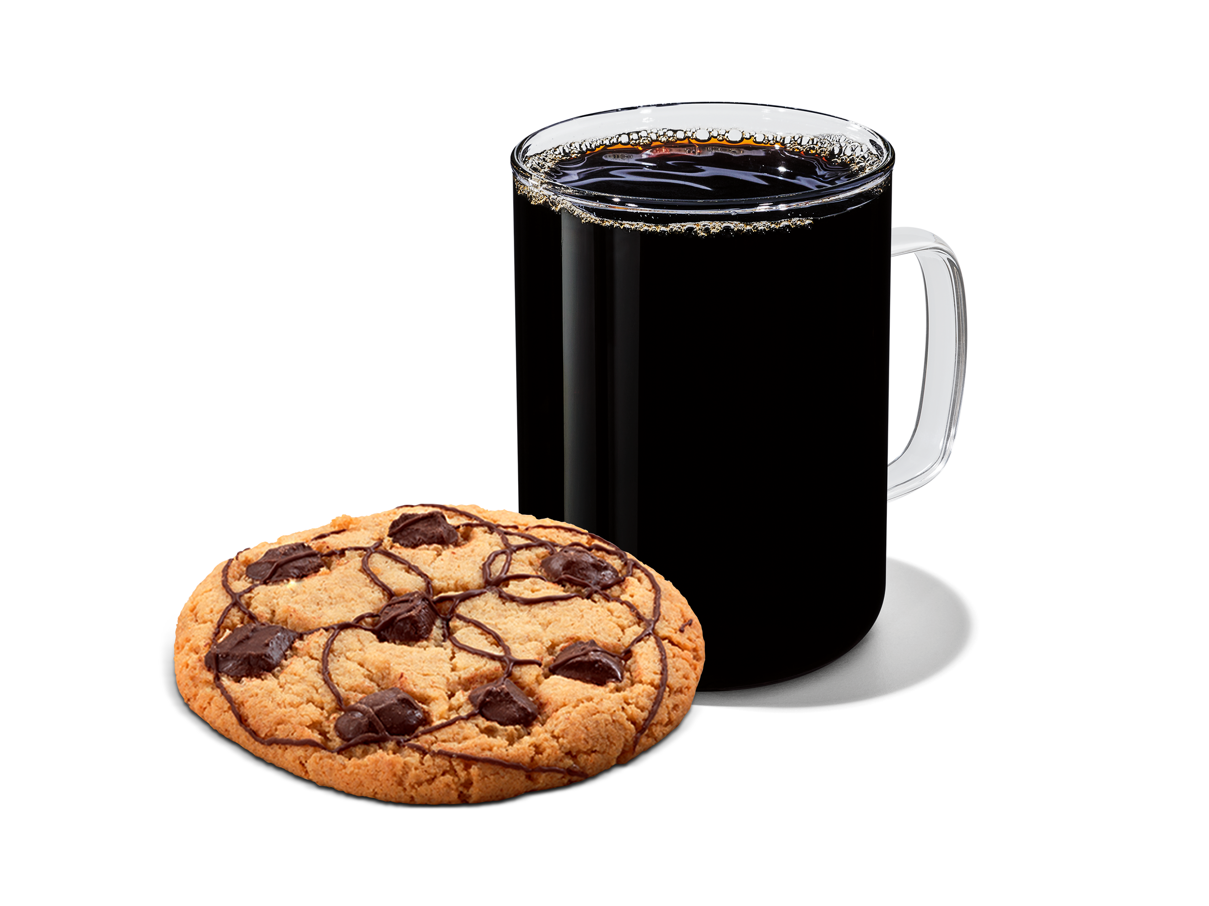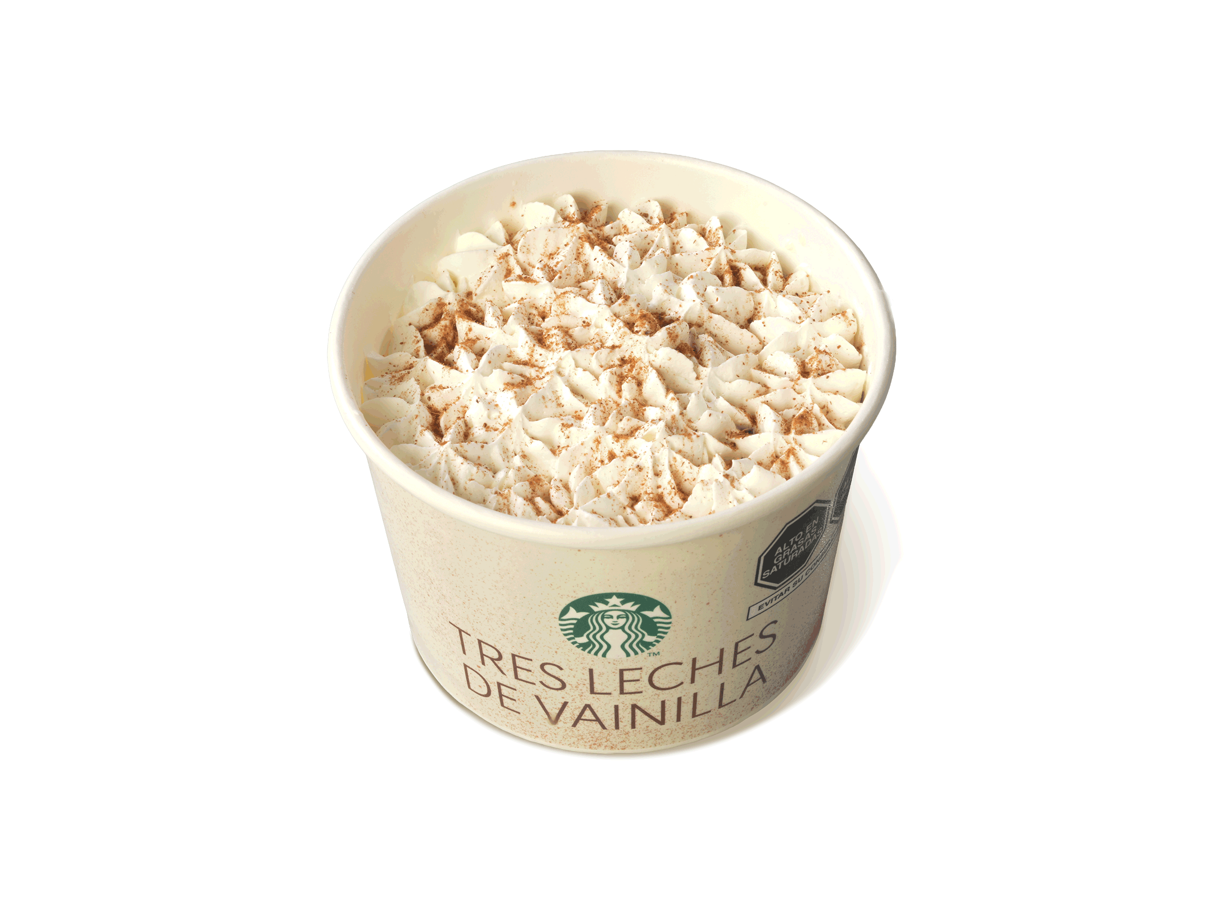 Café Espresso con capas de mocha y mocha blanco combinadas en leche vaporizada, decorado con crema batida y chispas sabor chocolate. Sin endulzantes.