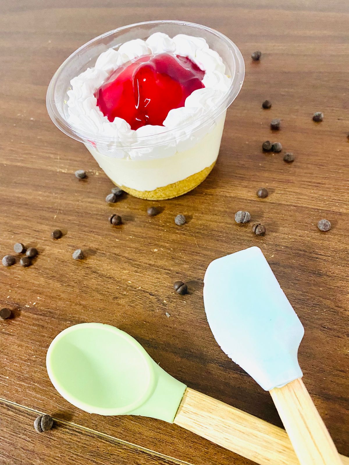 Cuchareable Chesscake de Fresa de 8 onzas, Base de galleta, con una mezcla de queso crema, chantillí y leche condensada decorada con fresas (porción personal)