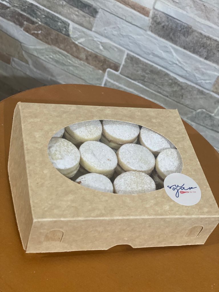 24 Mini alfajores rellenos de manjar blanco.