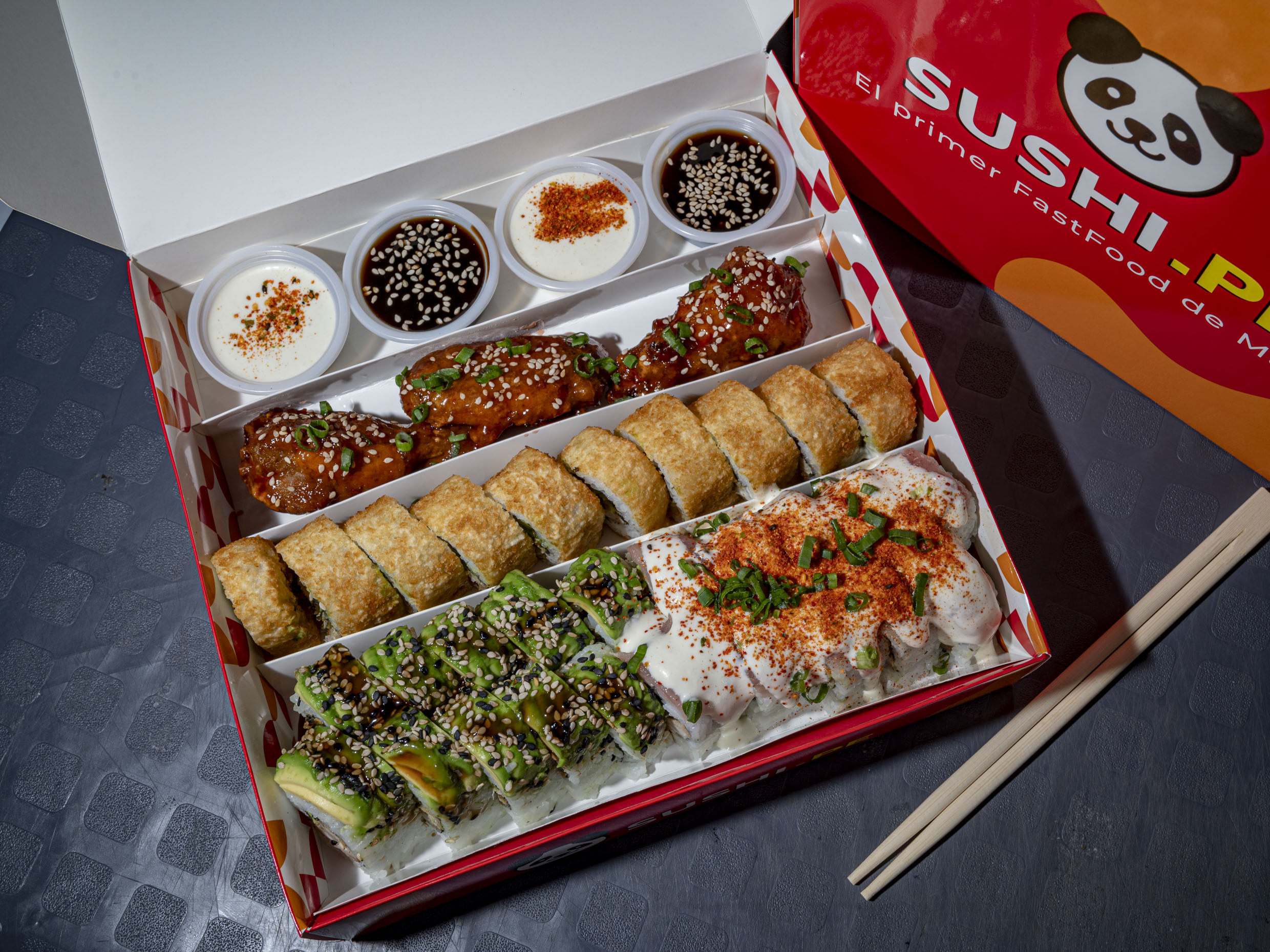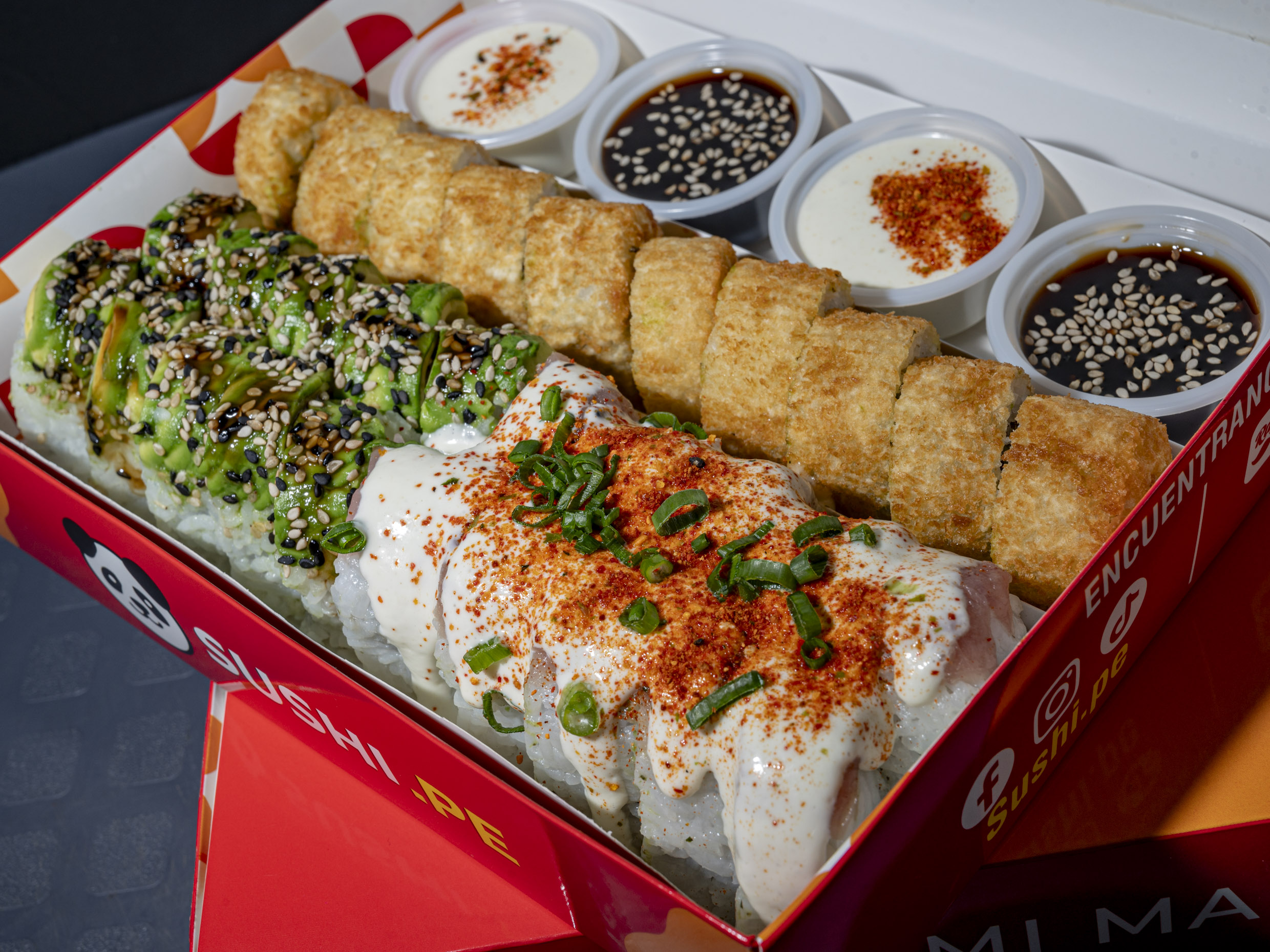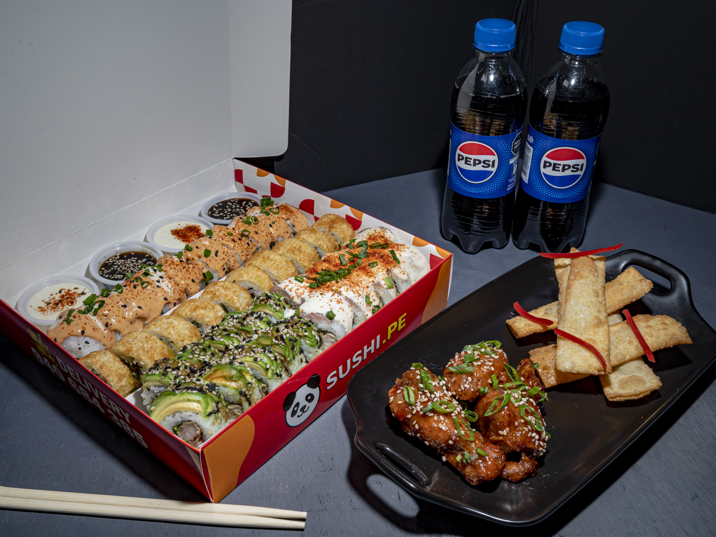 Exclusivo en DIDI: 36 makis de 3 sabores a elección y 1 Pepsi de 350ml. Incluye 1 salsa acevichada y 1 salsa tare y 1 par de palitos.