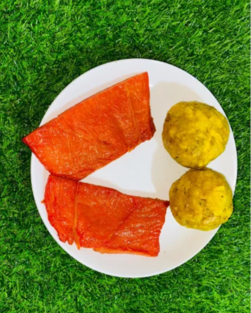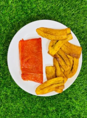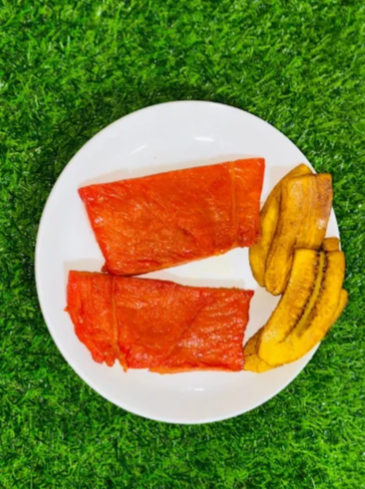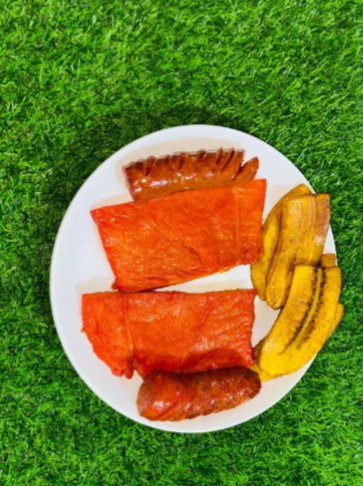 2 Bolas de plátano bellaco verde y 1 cecina roja ahumada.