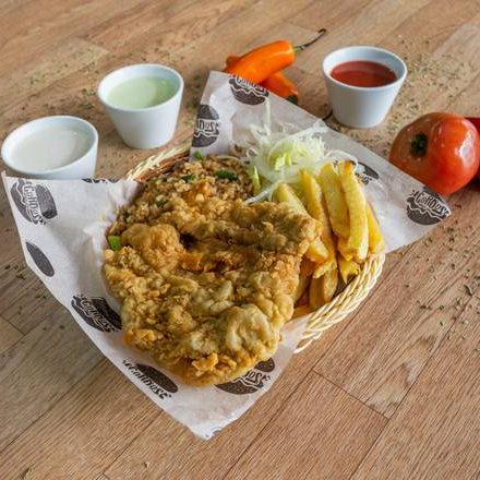 Filete Crispy BBQ + Ensalada + Papas Fritas