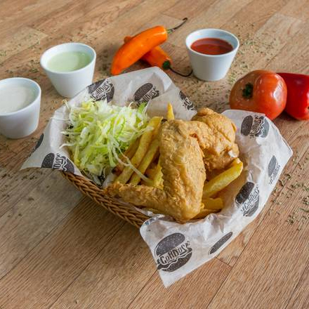 Filete Crispy Buffalo + Ensalada + Papas Fritas