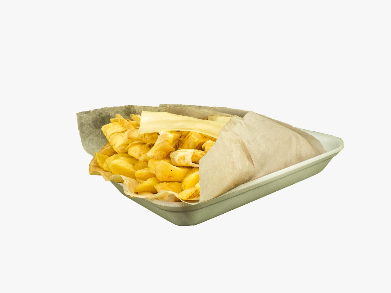Papa fritas, pollo deshilachado, hot dog, acompañados de cremas (mayonesa, kétchup, mostaza, tártara, golf, guacamole crema de palta, ají y aceituna).
