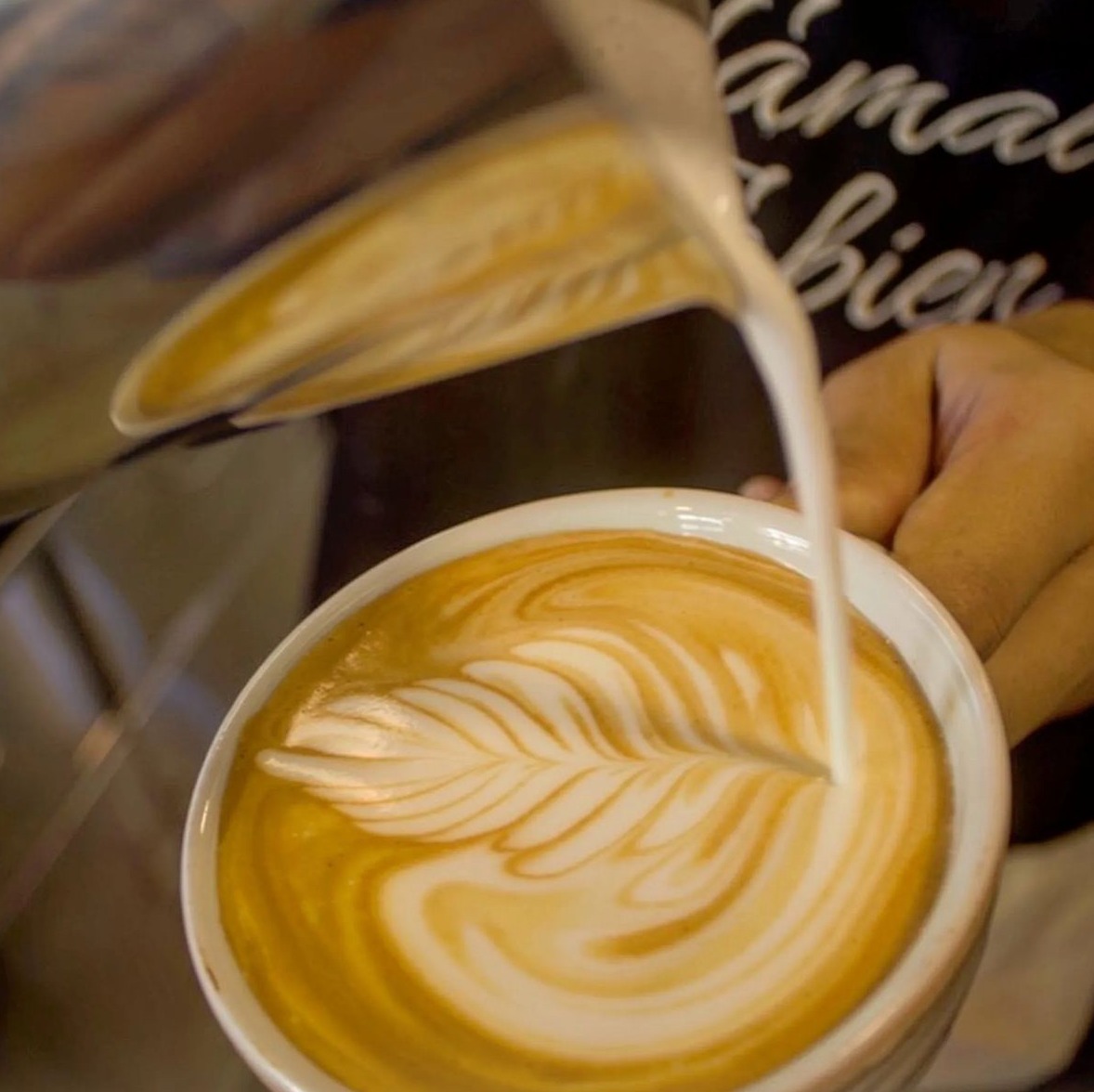 Cafe recien molido con leche cremsa.Envase a as de mai bpi.