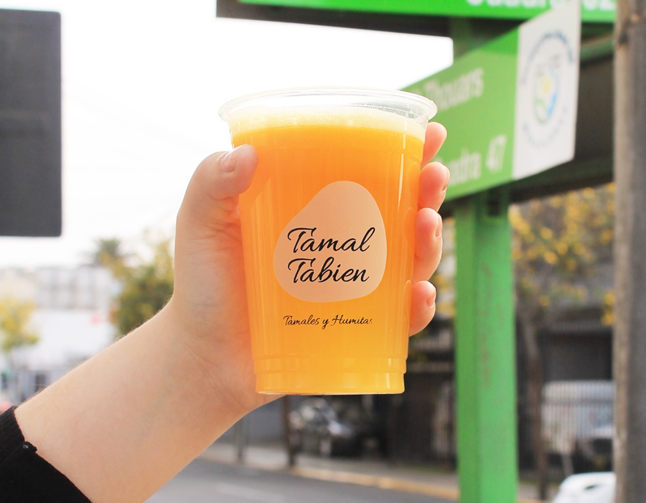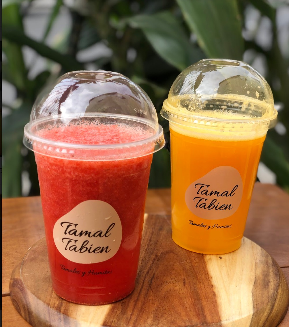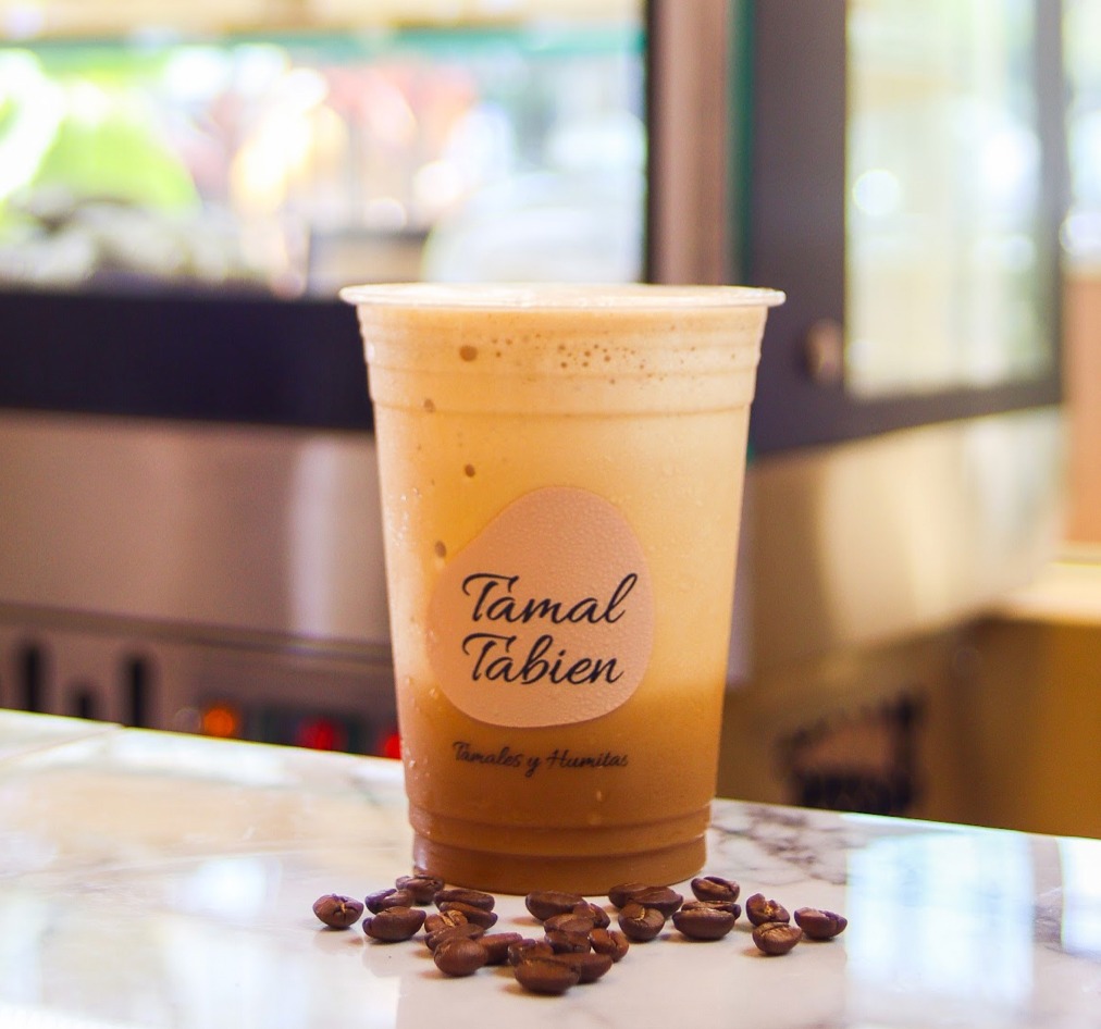 Bebida de cafe recien molido y leche al vapor.Envase a base de harina de maiz.