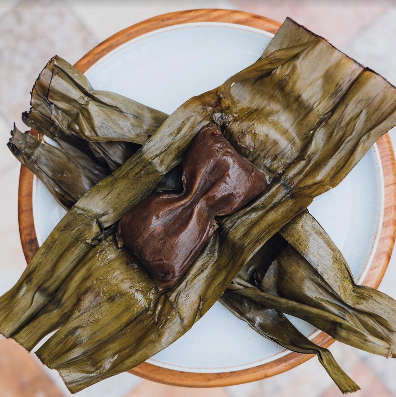 Tamal chinchano de maiz cuzqueño con relleno de chancho,mani,huevo,aceituna y aji amarillo complementos al gusto,a eleccion