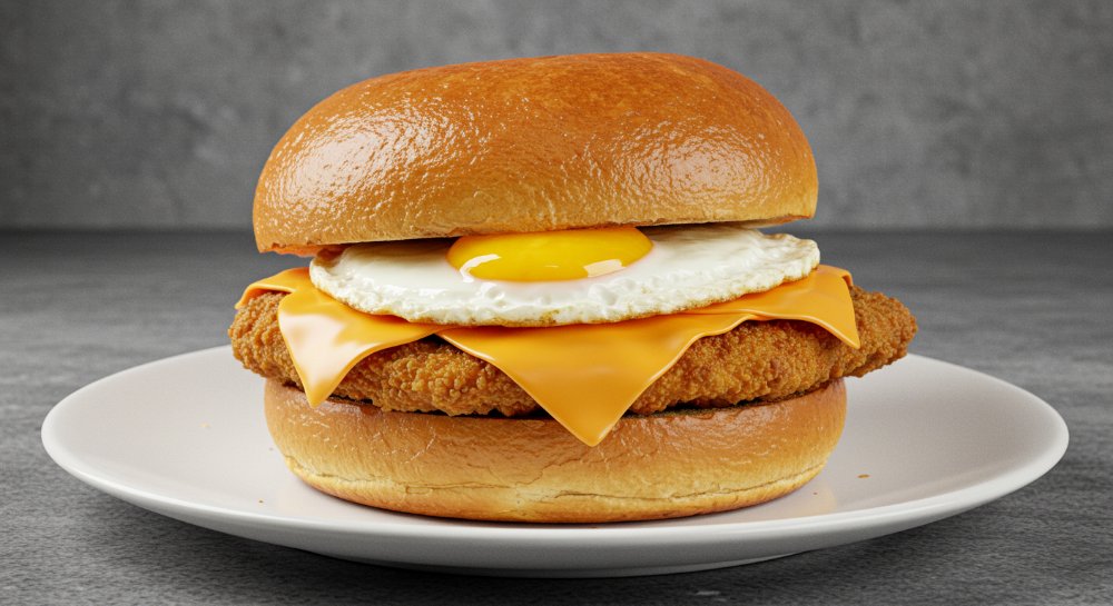 Sandwich de dos tenders de pollo crispy con huevo, queso y salsa spicy