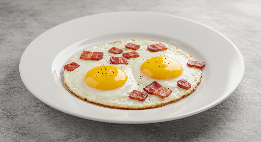 Brunch con mini pancakes con maple syrup, huevos revueltos y tocineta.
