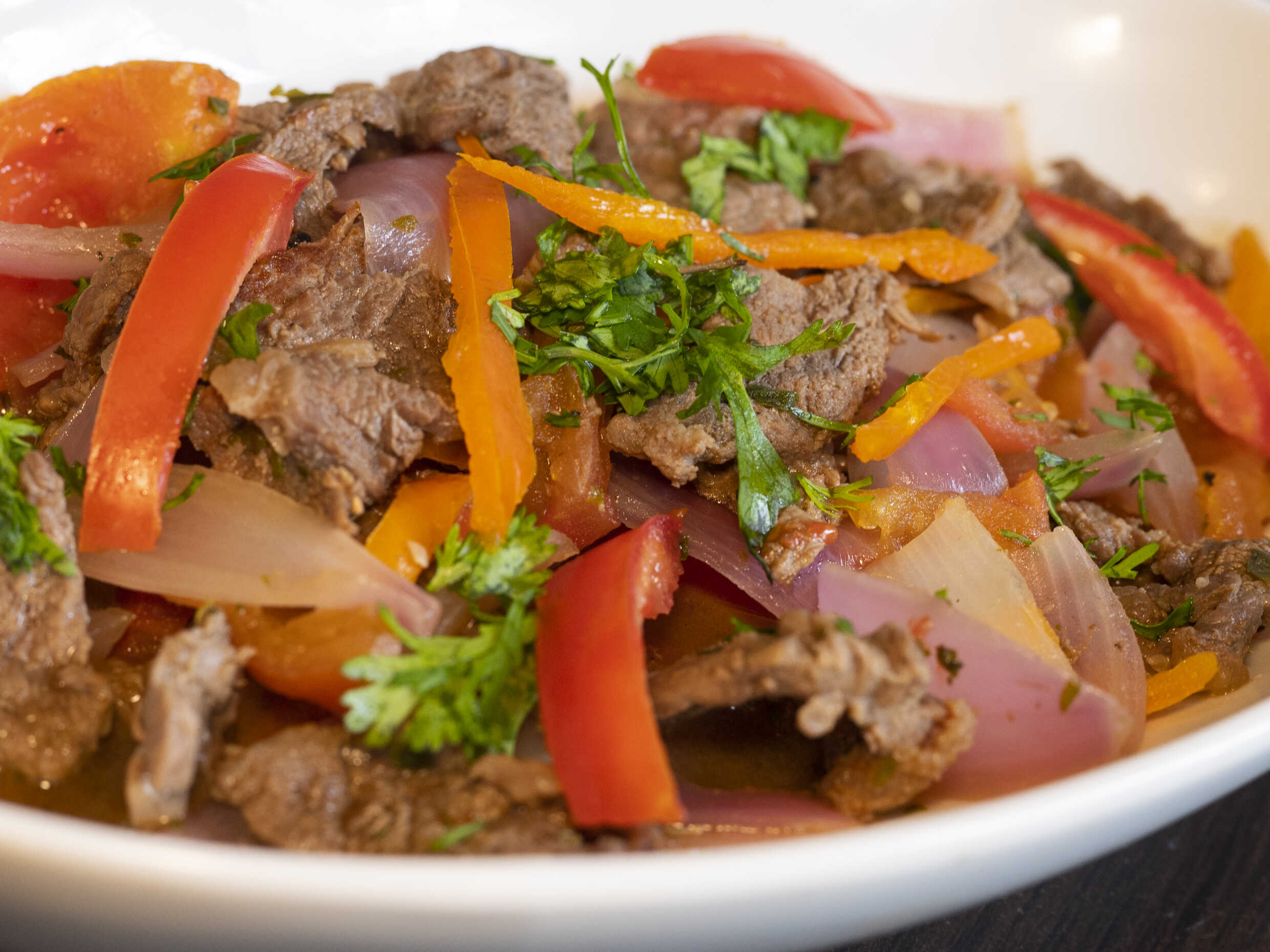 Con chimichurri, mayonesa, ajie y papitas al hilo