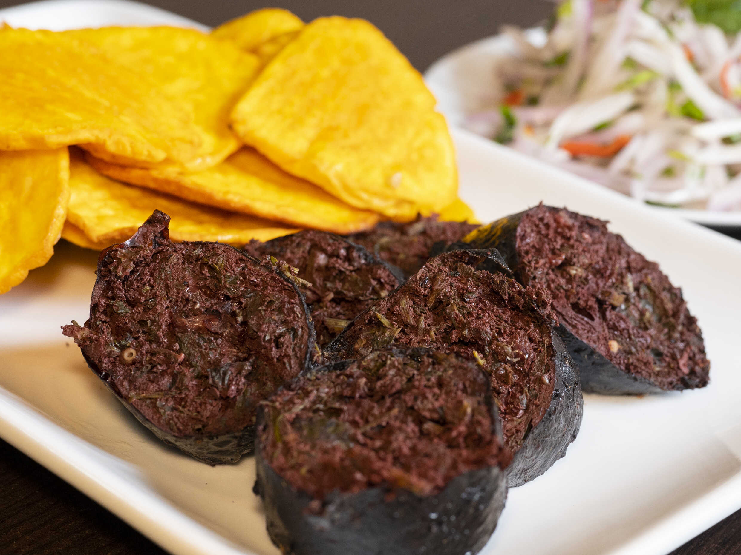Servido en 2 oanes, con camote y salsa de cebolla.