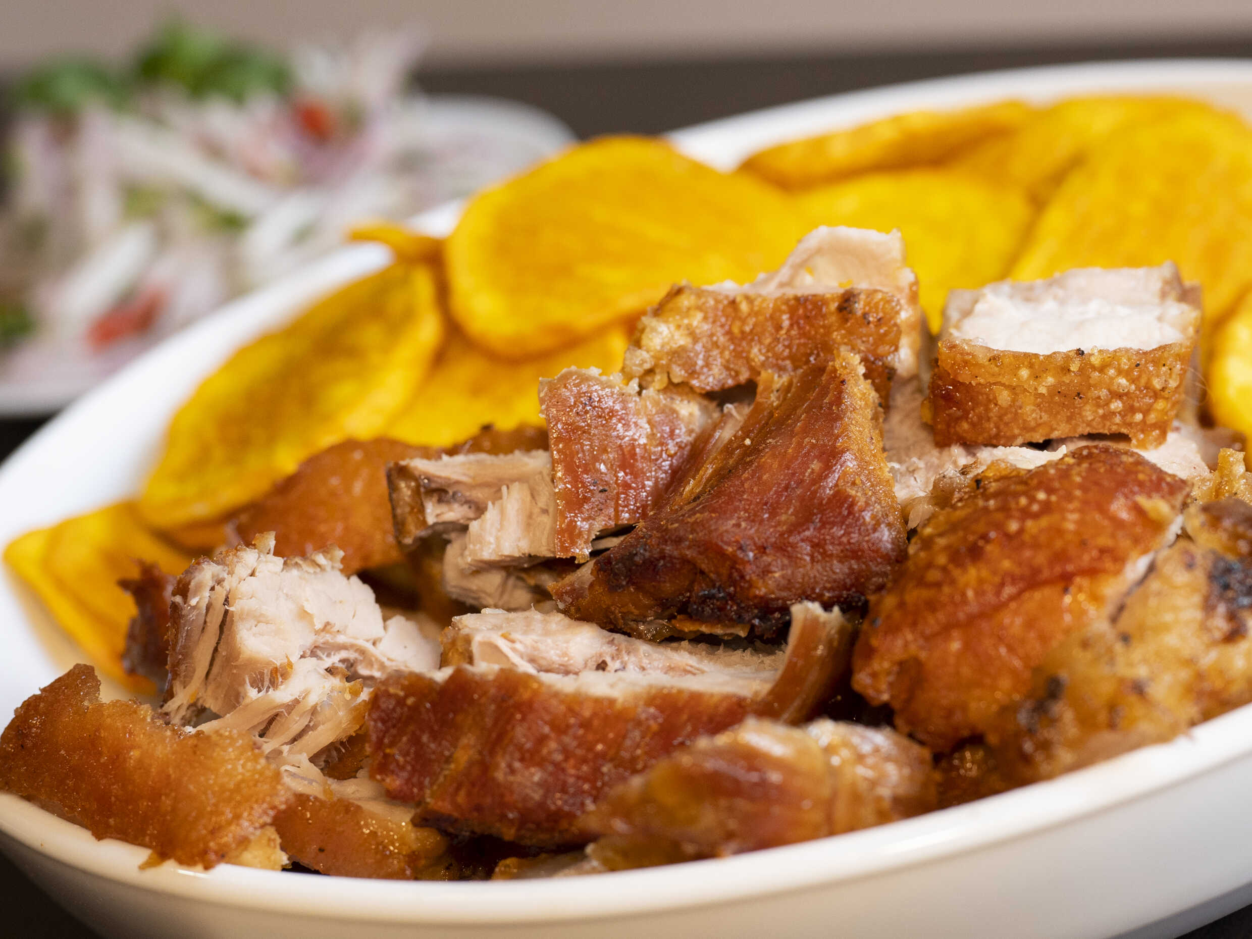 1/4 DE CHICHARRON +4 PANES+ PORCION DE CAMOTE..