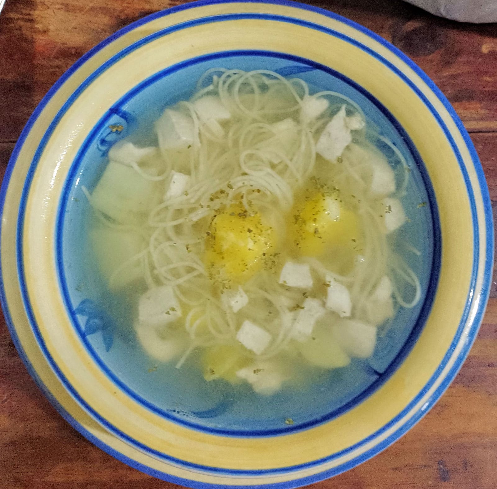 TALLARIN AL PESTO CON DOS HUEVOS FRITOS.