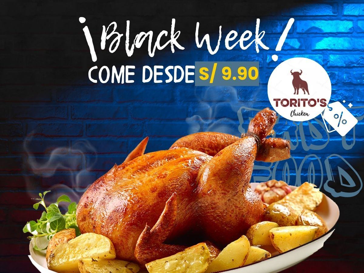 Platillo personal, máx. 2 personas: ½ pollo a la brasa (2 piezas) con una porción de papas a la francesa fritas (500 g), ensalada (lechuga, zanahoria cocida, pepino y tomate) y cremas (mayonesa y ají de 2 oz).