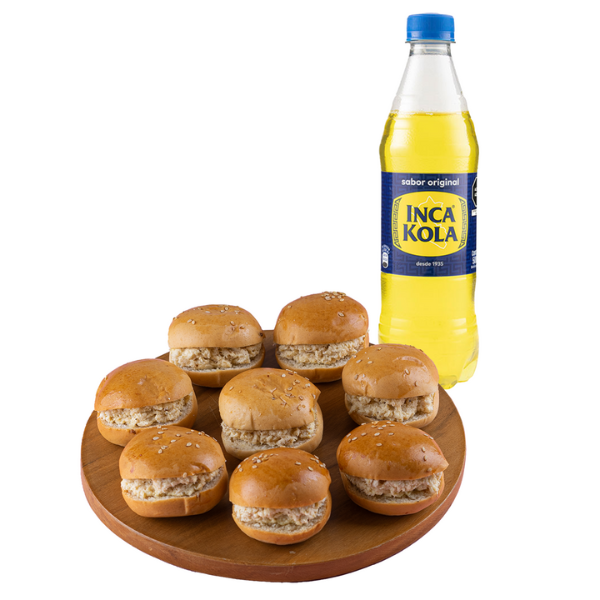 Pack sanguchitos de pollo c/durazno 12un + gaseosa 500ml. Elige tu gaseosa: Inka Cola 500ml, Inka Cola Zero 500ml, Coca Cola 500ml o Coca Cola Zero 500ml. (Sujeto a disponibilidad) Comunicanos tu elección