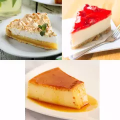 Porción de crema volteada*1 + Porción de pie de limón*1 + Porción de cheesecake de fresa*1