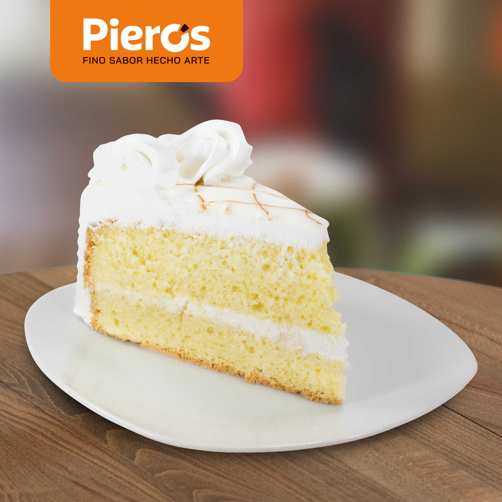 Delicioso bizcochuelo de vainilla, cubierto con nuestra receta casera de 4 leches mezclado con chirimoya, relleno de manjar blanco y decorado con chantilly.