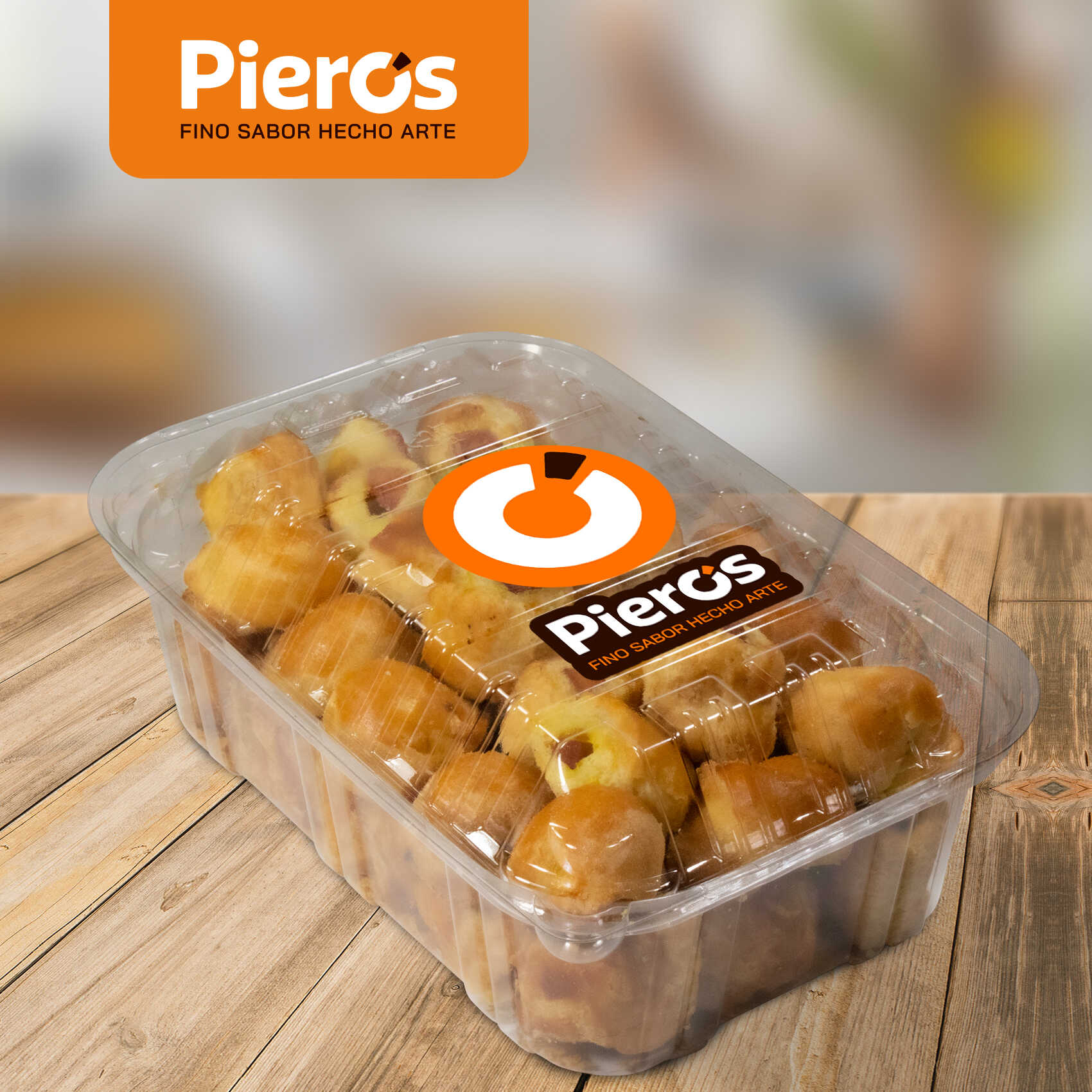 Bizcochuelo humedecido de leches, relleno de manjar blanco y decorado con canela, chocolatería Pieros.