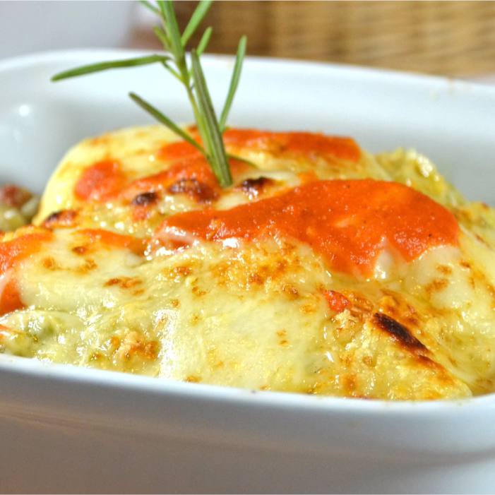 Rellenos de salsa bolognesa, espinacas, champiñones, tomates y finas hierbas.