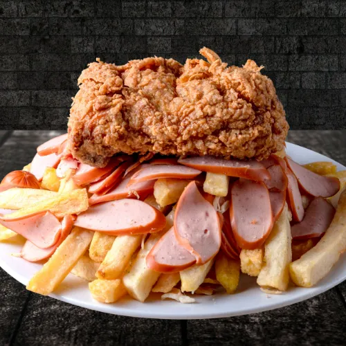 BEBIDA*1 + PIEZA POLLO + PAPAS + HOTDOG+JAMON,QUESO,HUEVO*1
