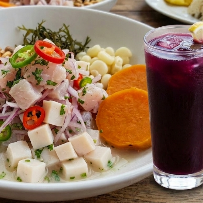 ceviche + chicharron pota*1 + Chicha Morada Vaso*1