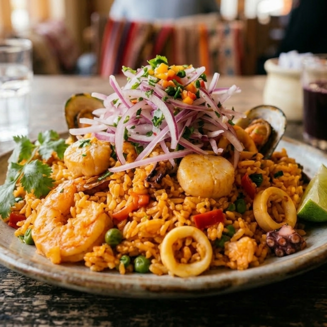 arroz c/mariscos +salsa criolla