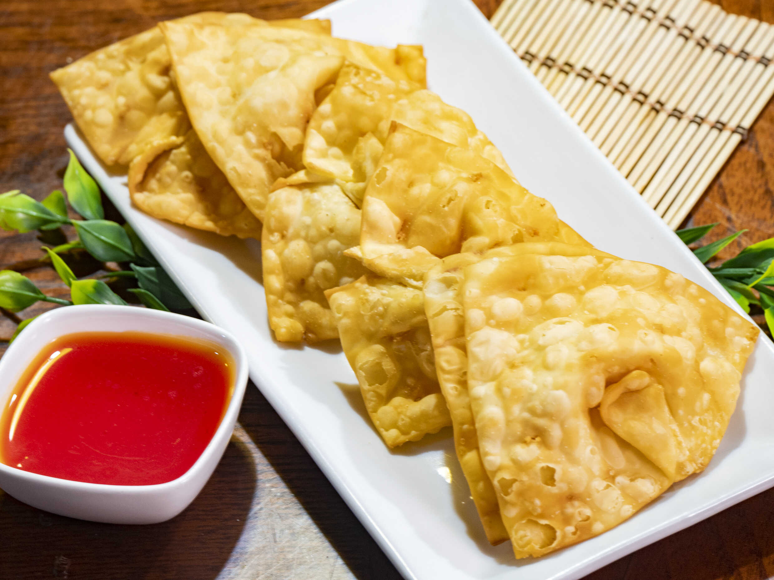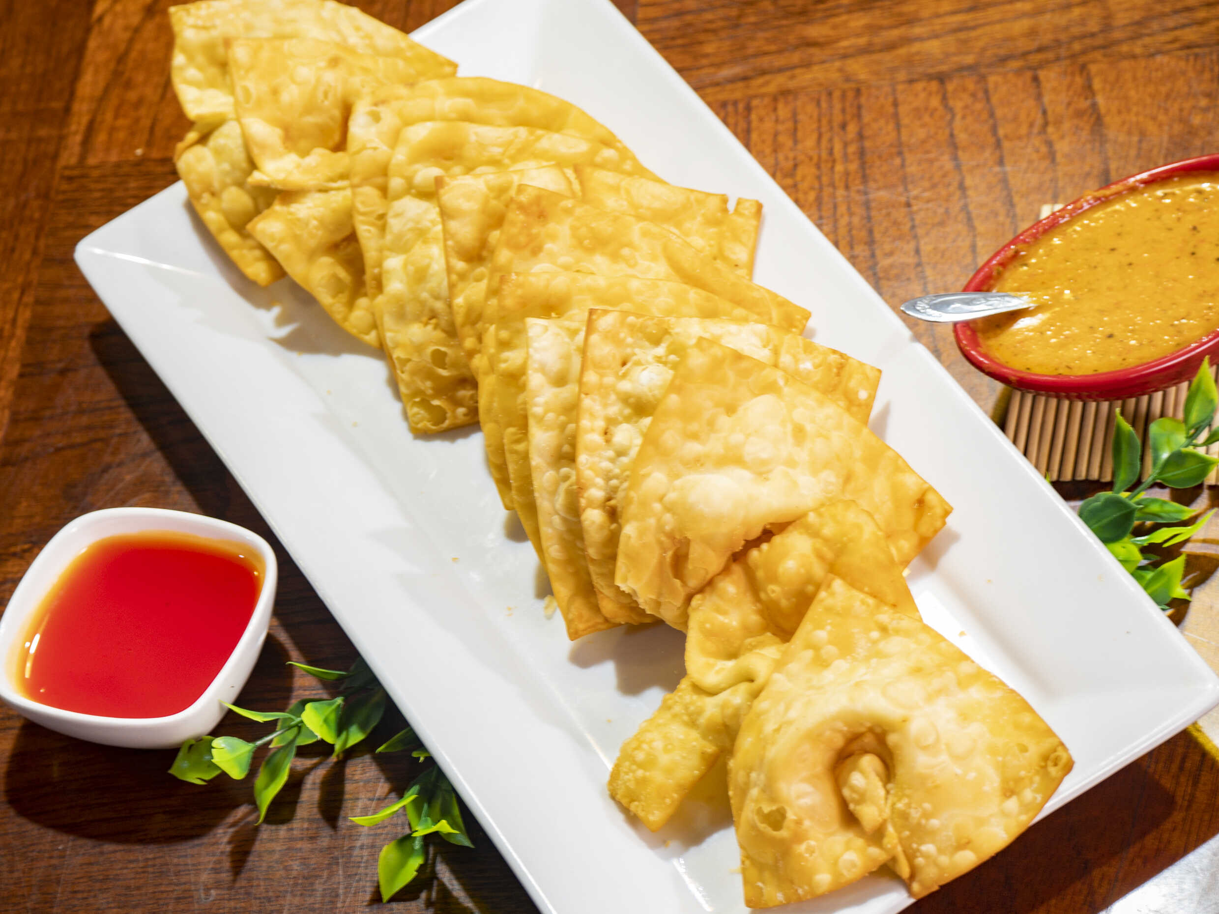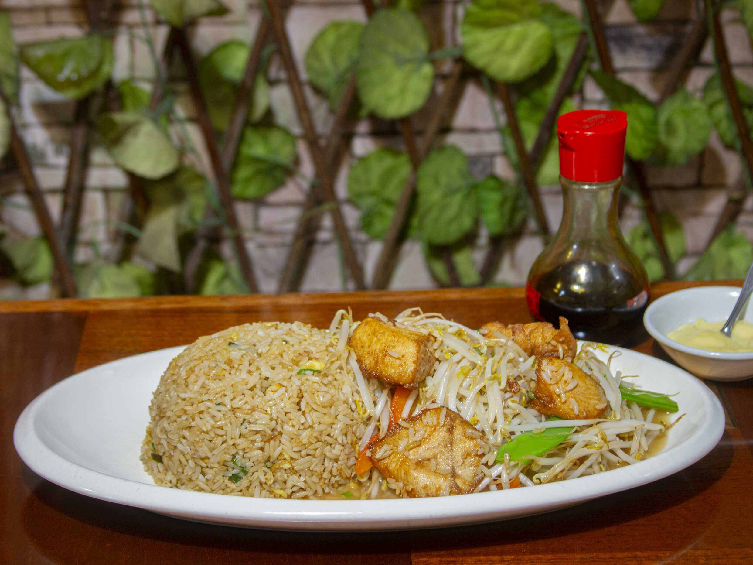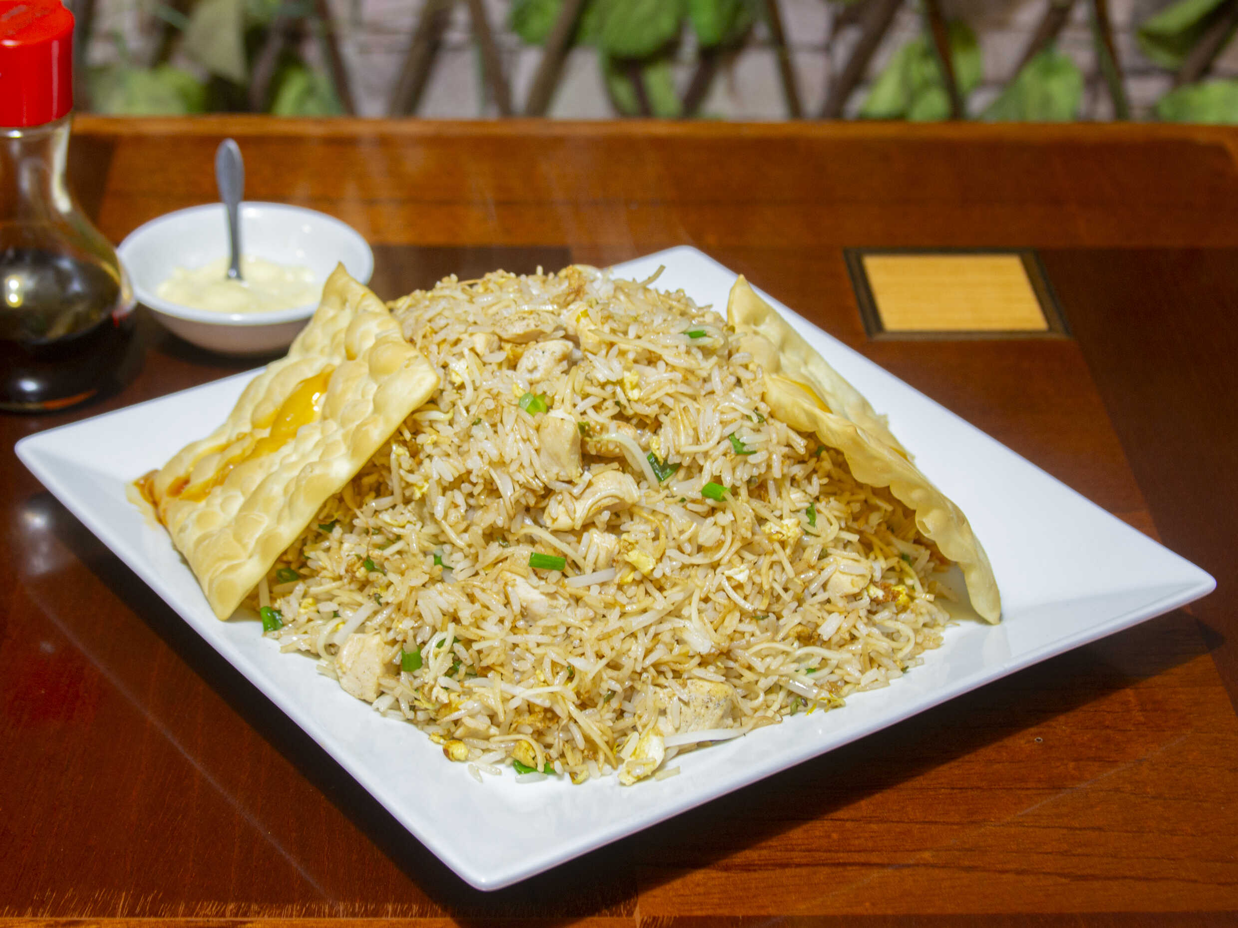 Chaufa y tipakay. Incluye sopa wantán o wantán frito.