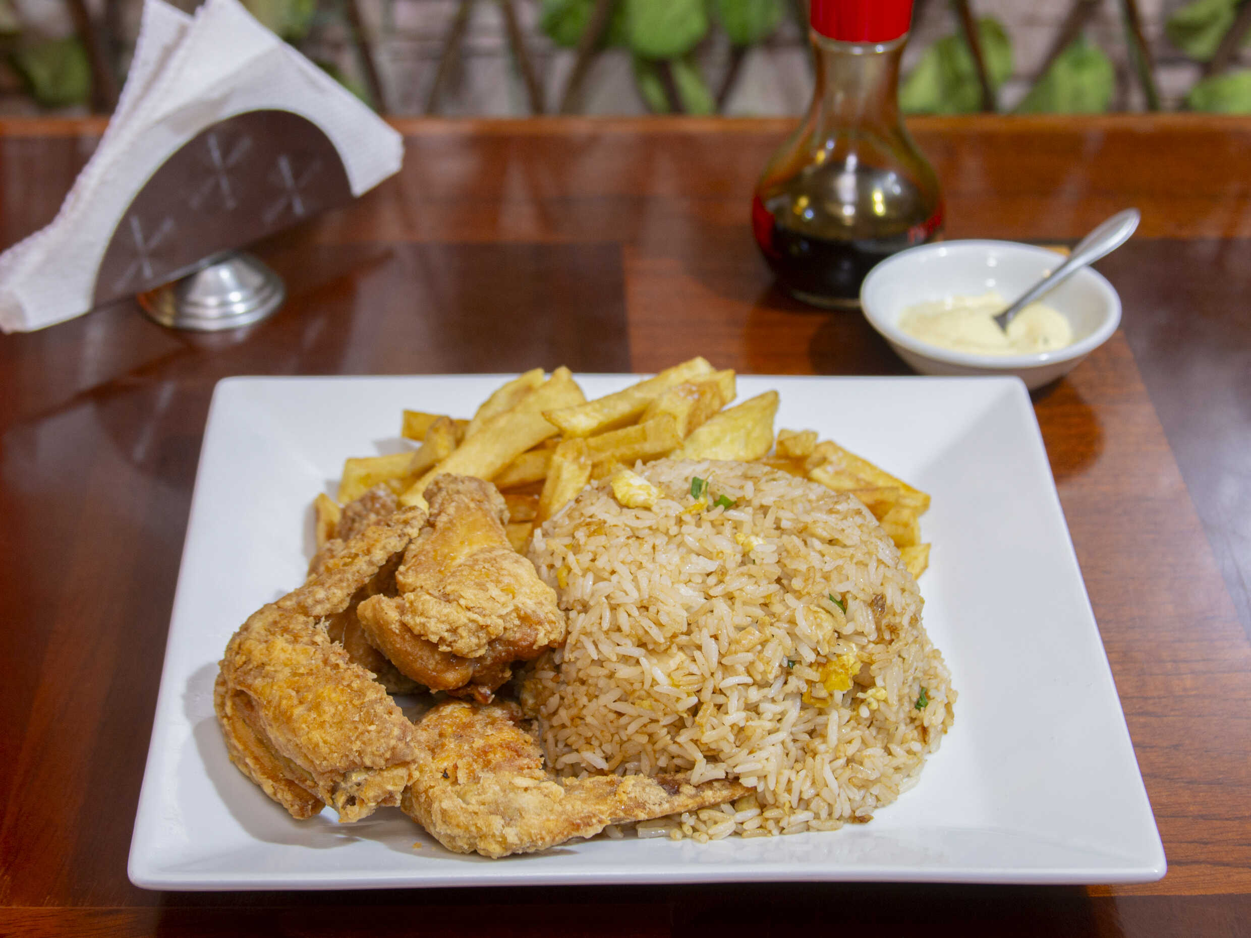 Chaufa y chijaukay. Incluye sopa wantán o wantán frito.