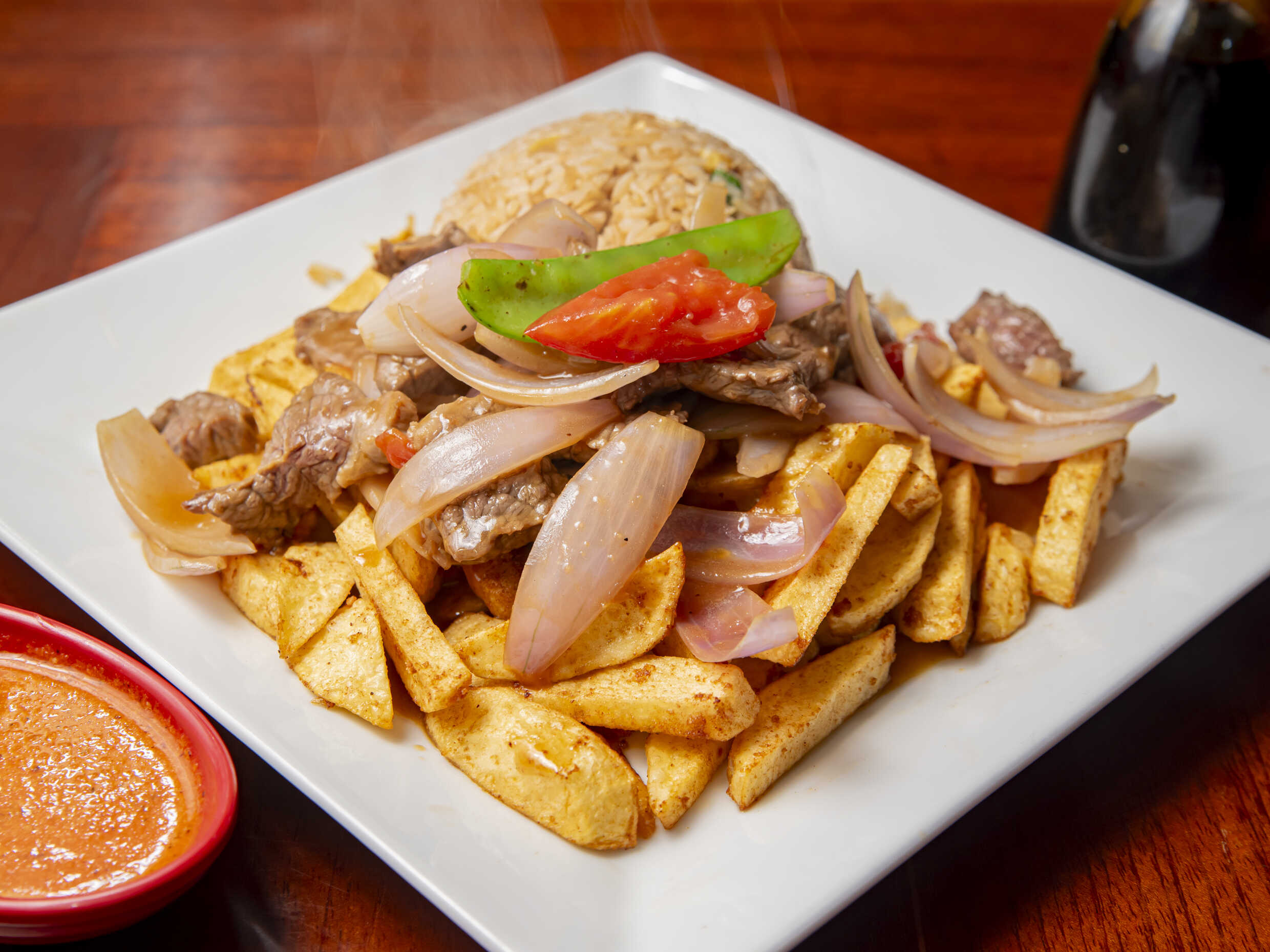 Exquisita mezcla de piña, pollo en trozos, chancho, carne y langostino bañado en salsa de tamarindo y verduras chinas con porción de arroz chaufa. Incluye wantán frito o sopa wantan.