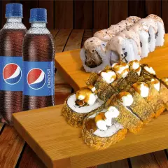 24 cortes de makis, escoge 2 de tus sabores favoritos + 2 Pepsis 355 ml+ 1 salsa Tare y 1 palito.