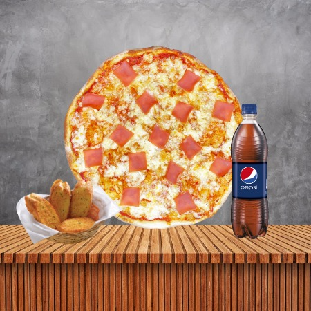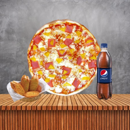 Pizza Hawaiana Tamaño Grande*1 + Pepsi 750 ml*1 + Pan al Ajo 04 Unidades*1