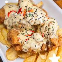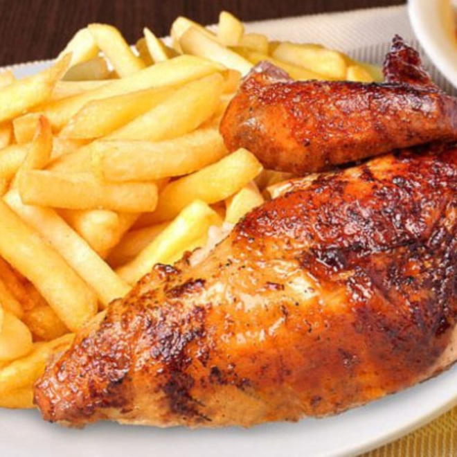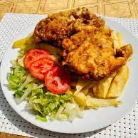 Pecho de pollo, papas fritas, ensalada